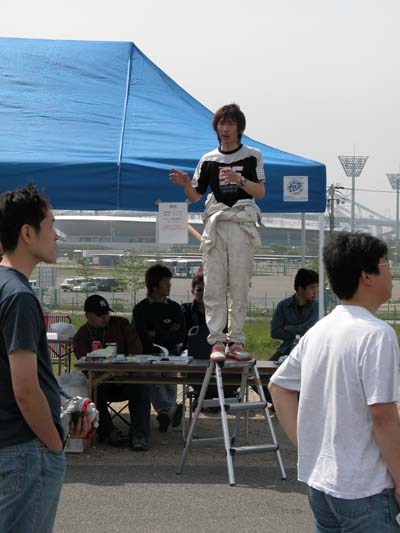 ↓身振り手振りで一生懸命ドラミをする図