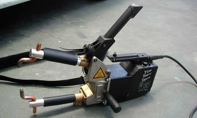 ↓コイツは自動車メーカーが使っているのと同じ交流式のスポット溶接機(新衝突安全基準ボディー対応)です