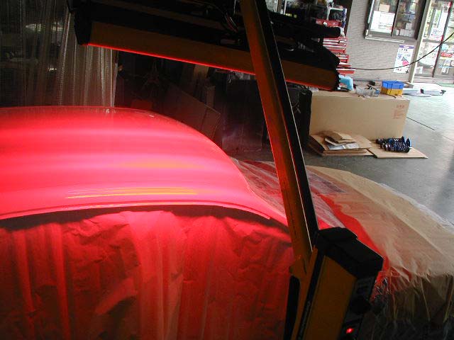 イタリア製・短波式乾燥機(キュアマスター)を使うことにより、塗装面の内側から確りと焼く事が出来ます。